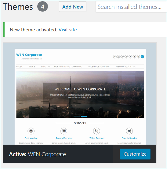 Install your new theme: Once you have found a them you like, simply click Install and once installed click Activate to enable the theme on your website.