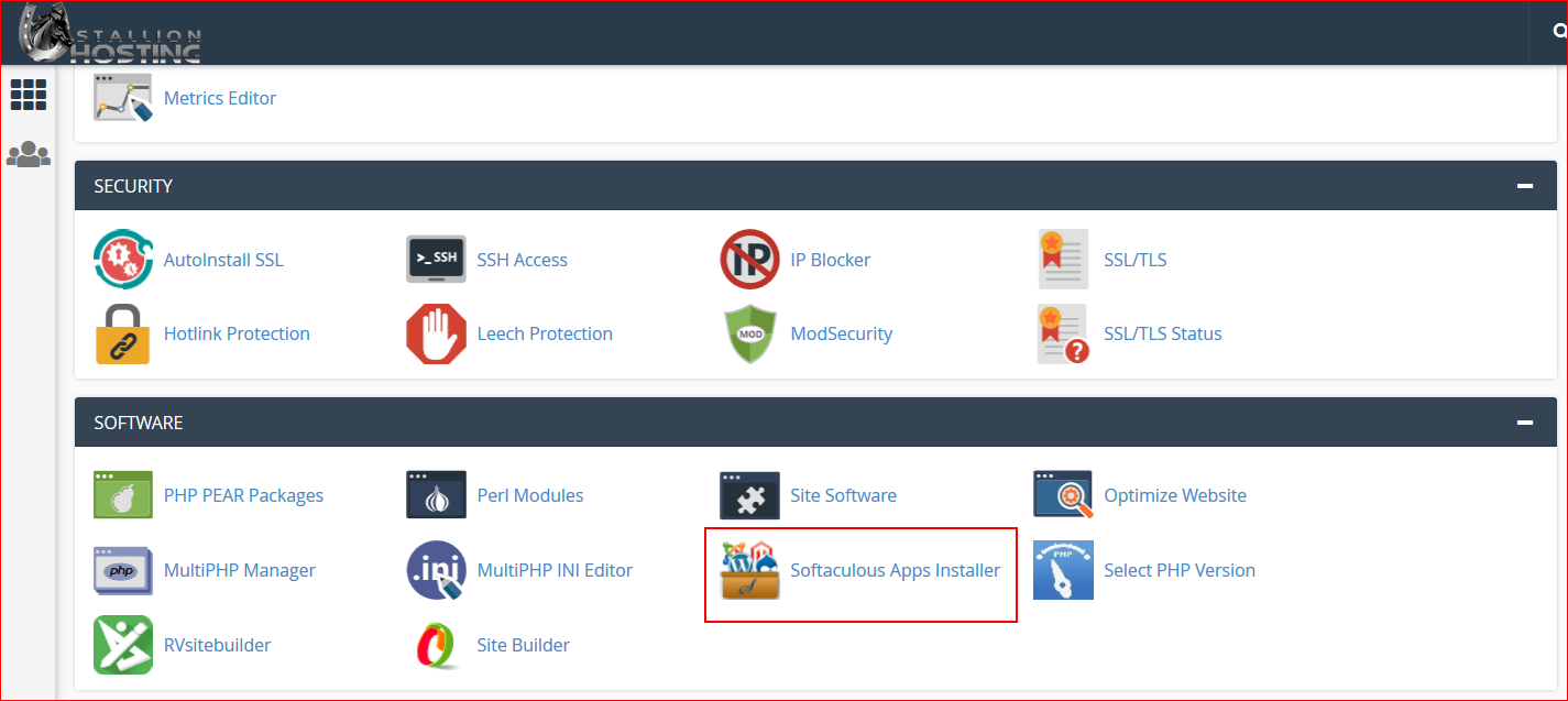 - Scroll down to the Software section of your cPanel and click on Softaculous Apps Installer