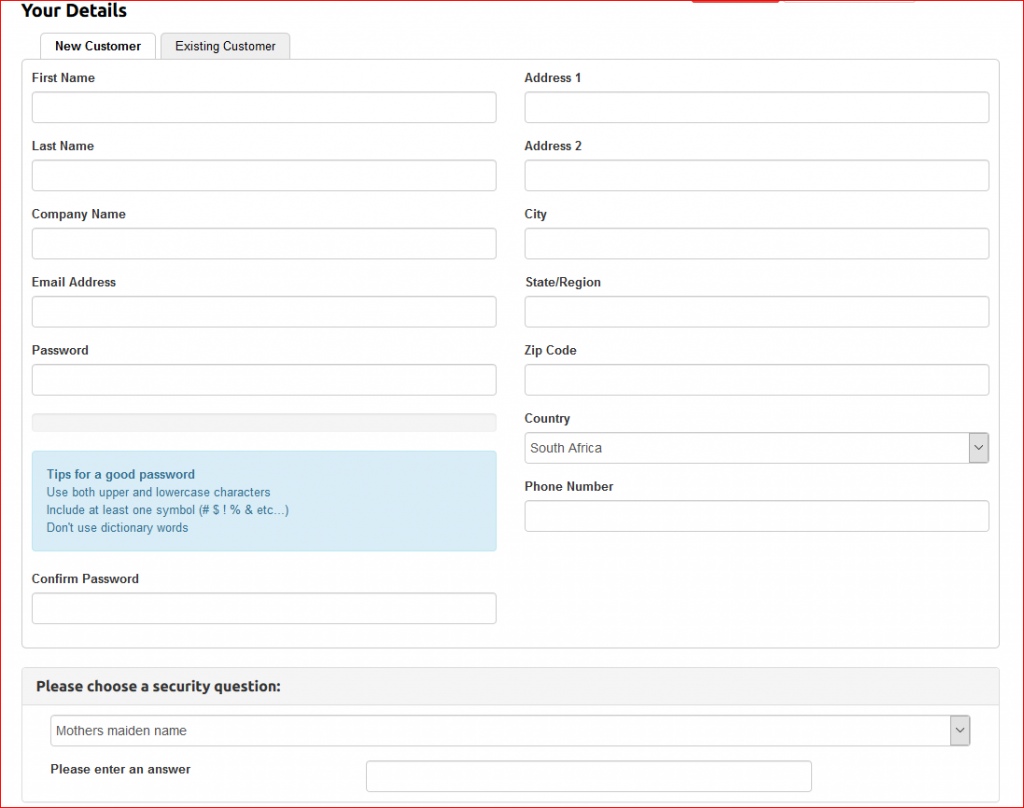 Review your order and then scroll down to create your account – simply fill in your details and create an account password.