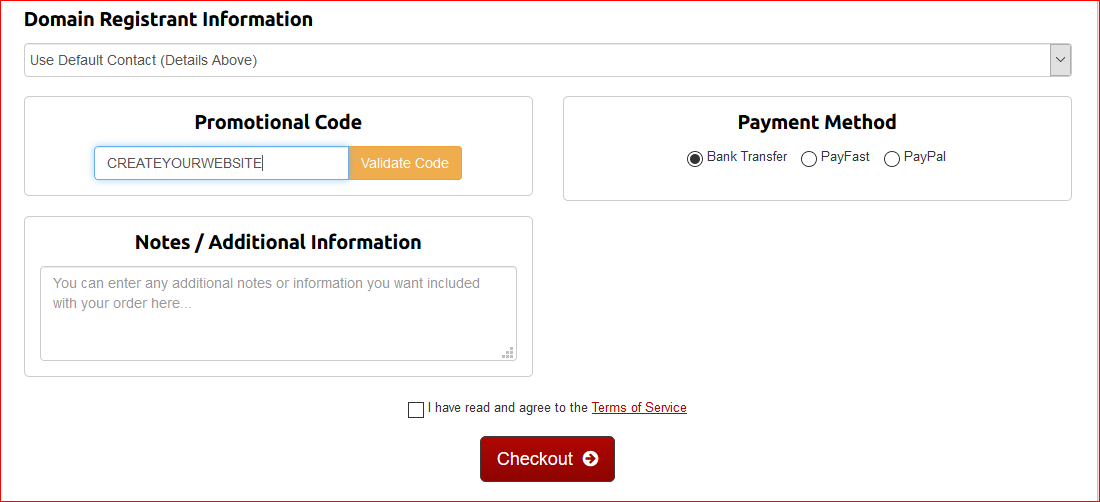 NB: Remember to use the Promotional Code CREATEYOURWEBSITE and click Validate Code to instantly receive 10% off your order.