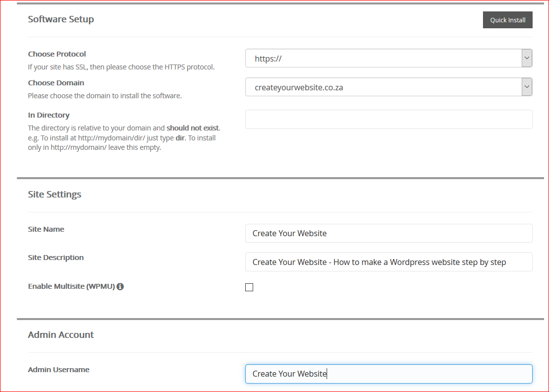 For this website, we chose CreateYourWebsite.co.za as the domain name.